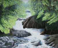 新緑のユーシン渓谷 洋画 F8