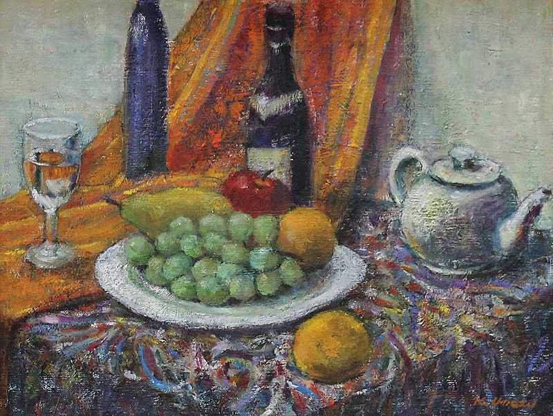 トレイのある静物 油彩 F6