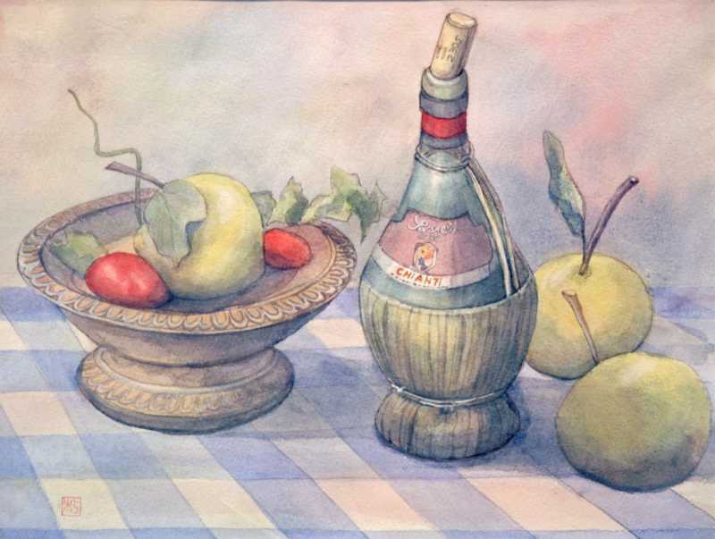 ワインのある静物 水彩 P10