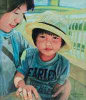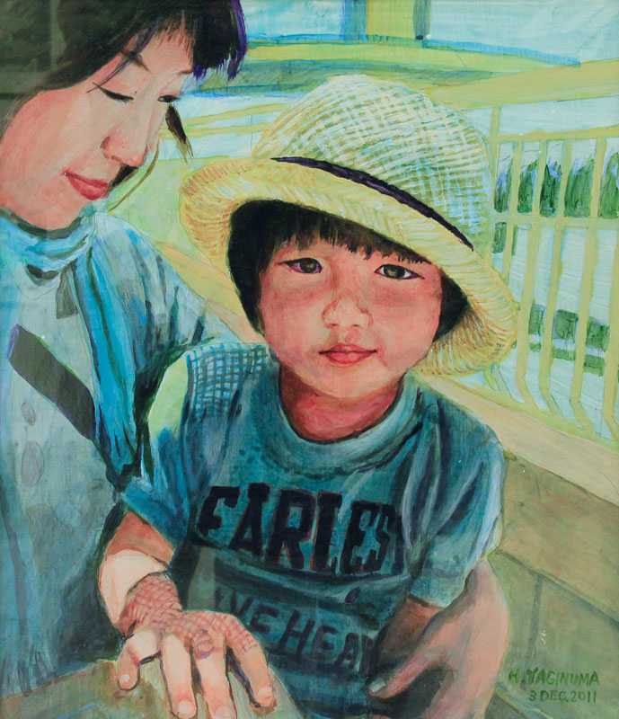 膝の上でくつろぐ午後 アクリル F10