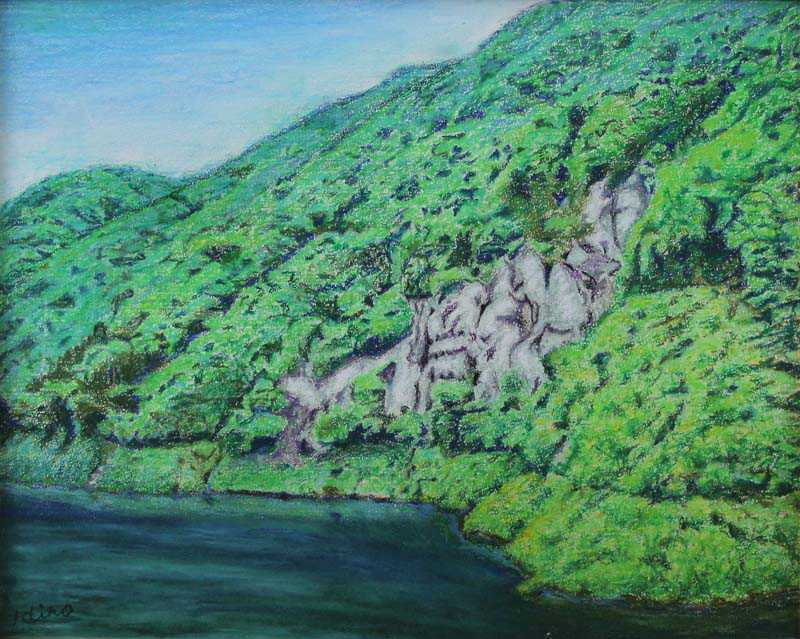 ダム湖の一角 洋画 F10