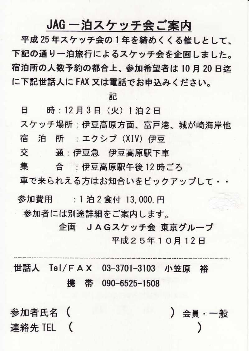 第20回スケッチ会案内(ジャグ・スケッチ会)