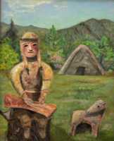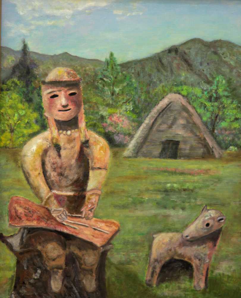 琴を弾くはにわ 油彩 F8