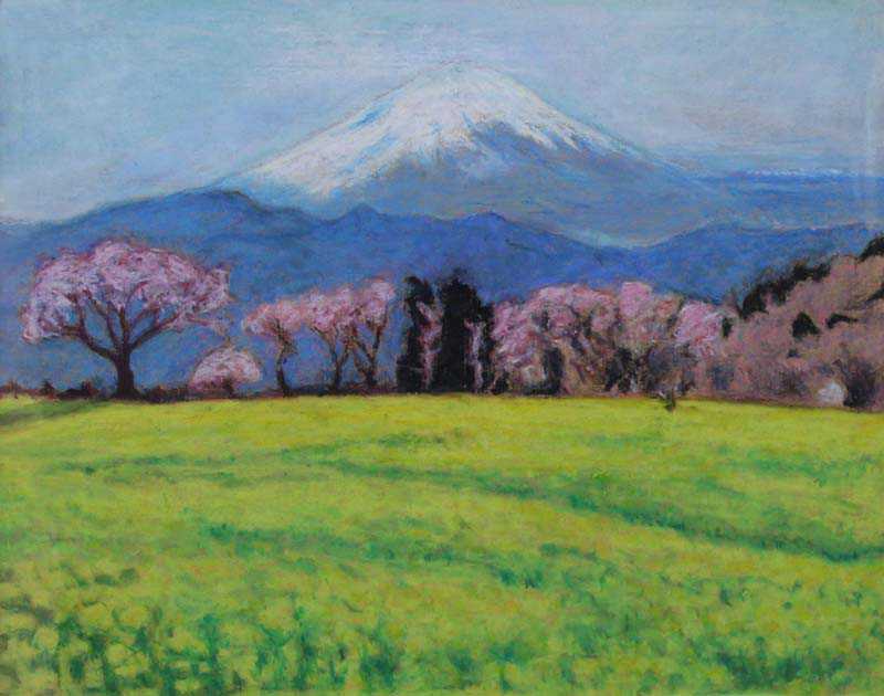 菜の花畑からの富士 洋画 F12