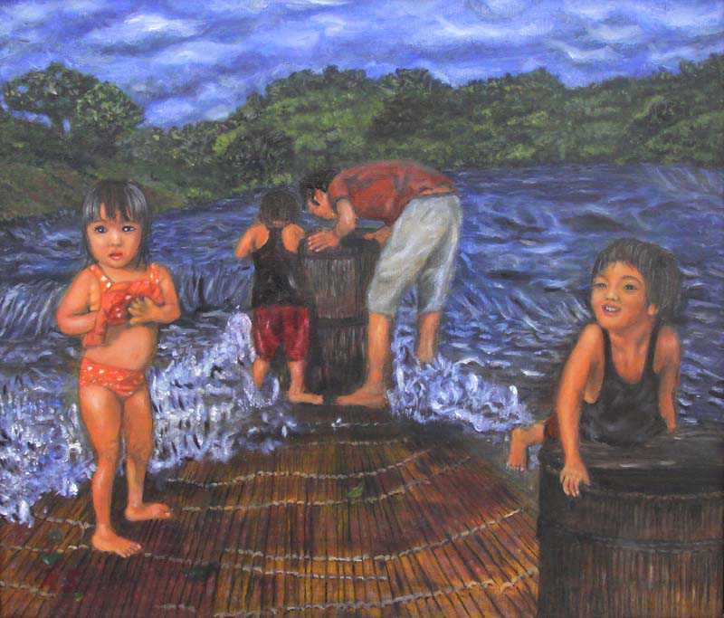 梁(やな) : 川遊び 洋画 F8