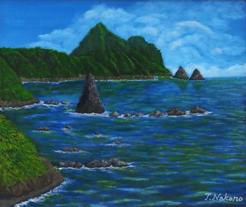 佐渡・大野亀の海 洋画 F8
