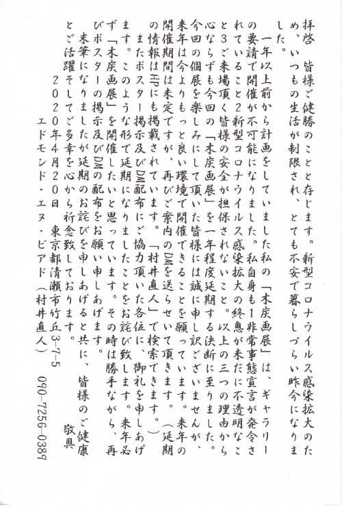 | 20/5/17〜23 | エドモンド・エヌ・ビアド | 木炭画展 銀座第7ビル1階ギャラリー 東京銀座
